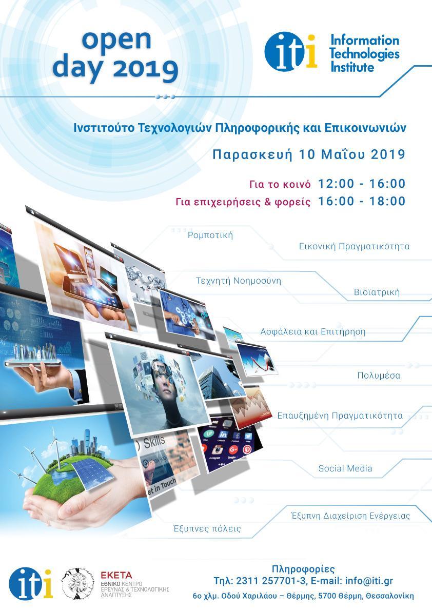 Το Ινστιτούτο Τεχνολογιών Πληροφορικής και Επικοινωνιών (ΙΠΤΗΛ) του Εθνικού Κέντρου Έρευνας και Τεχνολογικής Ανάπτυξης (ΕΚΕΤΑ) σε συνεργασία με τη Γενική Γραμματεία Έρευνας και Τεχνολογίας (ΓΓΕΤ) σας προσκαλεί να γνωρίσετε τον συναρπαστικό κόσμο της πληροφορικής σε μια εκδήλωση ανοιχτή στο κοινό και τις επιχειρήσεις, την Παρασκευή, 10 Μαΐου 2019.